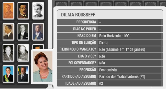 Neste jogo, você vai testar seu conhecimento sobre os presidentes da república brasileira. O jogo traz informações como história de cada um, como chegaram ao poder e qual seu partido.