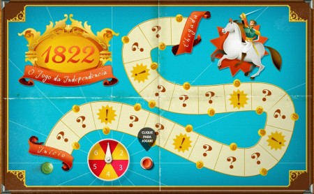 Se você cair na casa com um ponto de interrogação, precisa responder uma pergunta sobre o tema. Se cair em uma casa com ponto de exclamação, aprende alguma curiosidade sobre o período.