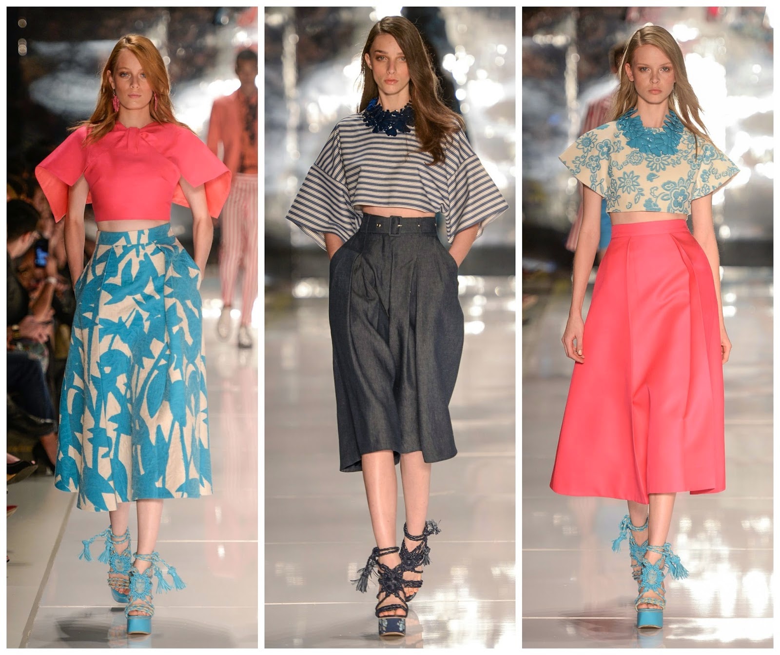 O comprimento mídi já está estabelecido no verão 2015. Pode chegar no joelho ou ficar no meio da canela. Os longos, esvoaçantes, fluidos, ou retos, tipo coluna, também prometem ganhar as ruas na estação quente.