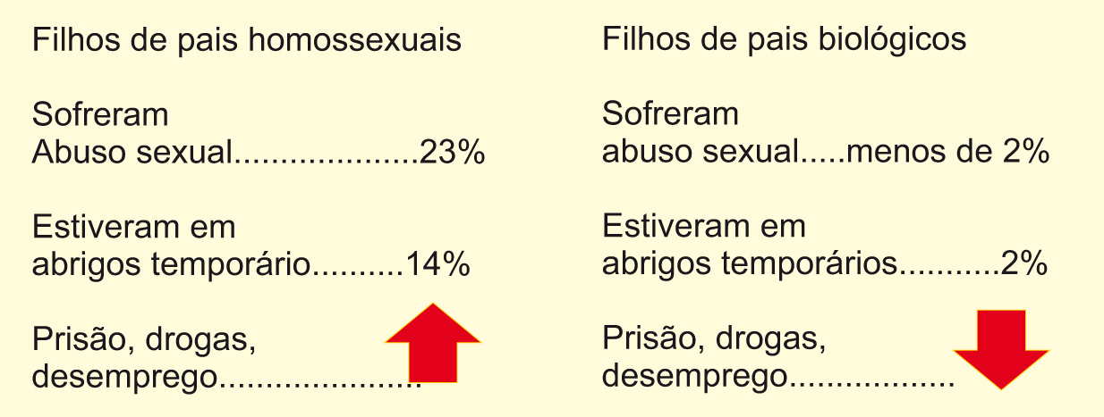 Crianças com pais em relacionamentos homossexuais experimentaram desvantagens quando comparadas com crianças criadas por pais biológicos.